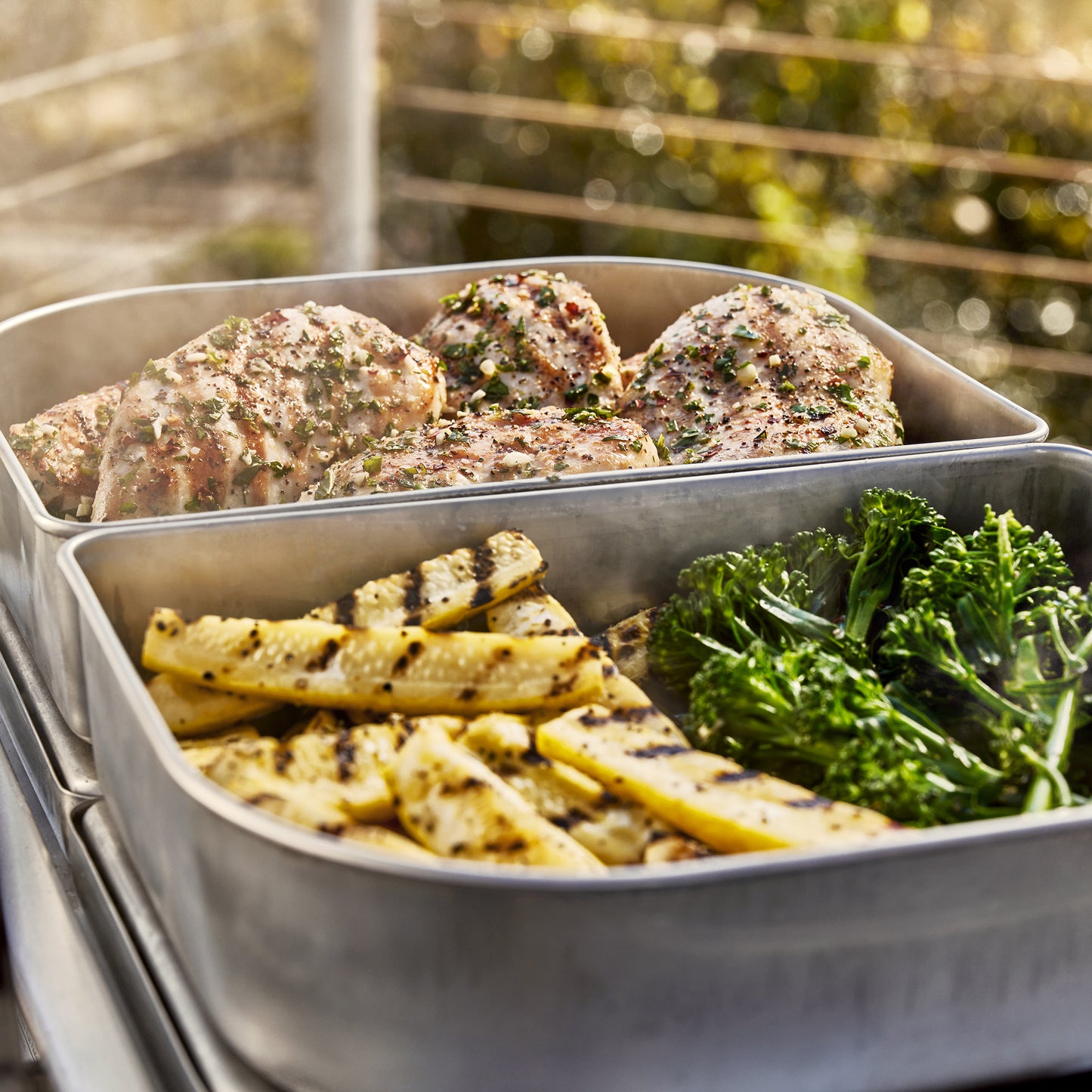 L’heure du repas arrivée, les convives profiteront d’un service buffet grâce aux chauffe-plats qui garderont tous vos aliments savoureux à la bonne température pendant des heures, sans les brûler ni les dessécher.