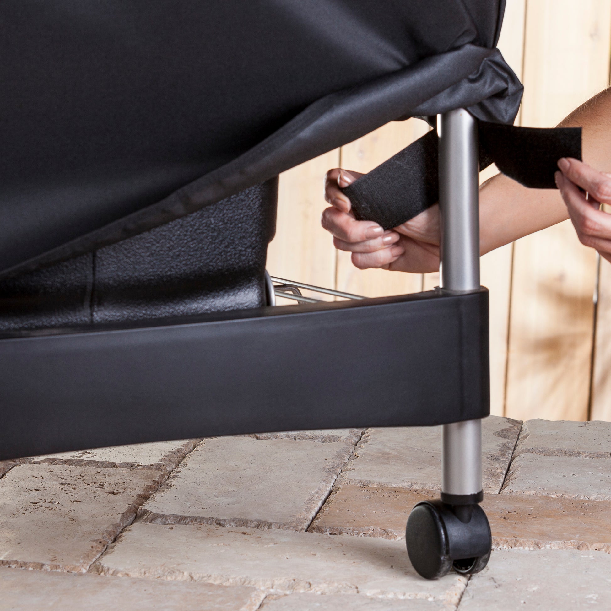 Ne craignez plus la pluie battante, la neige, ni le soleil brûlant. Cette housse de barbecue Premium, légère, mais durable, est facile à placer ou à retirer de votre barbecue. Les courroies de fixation l’empêchent de s’envoler dans la cour du voisin, et le matériau imperméable contribue au maintien de la surface propre et lustrée de votre barbecue.