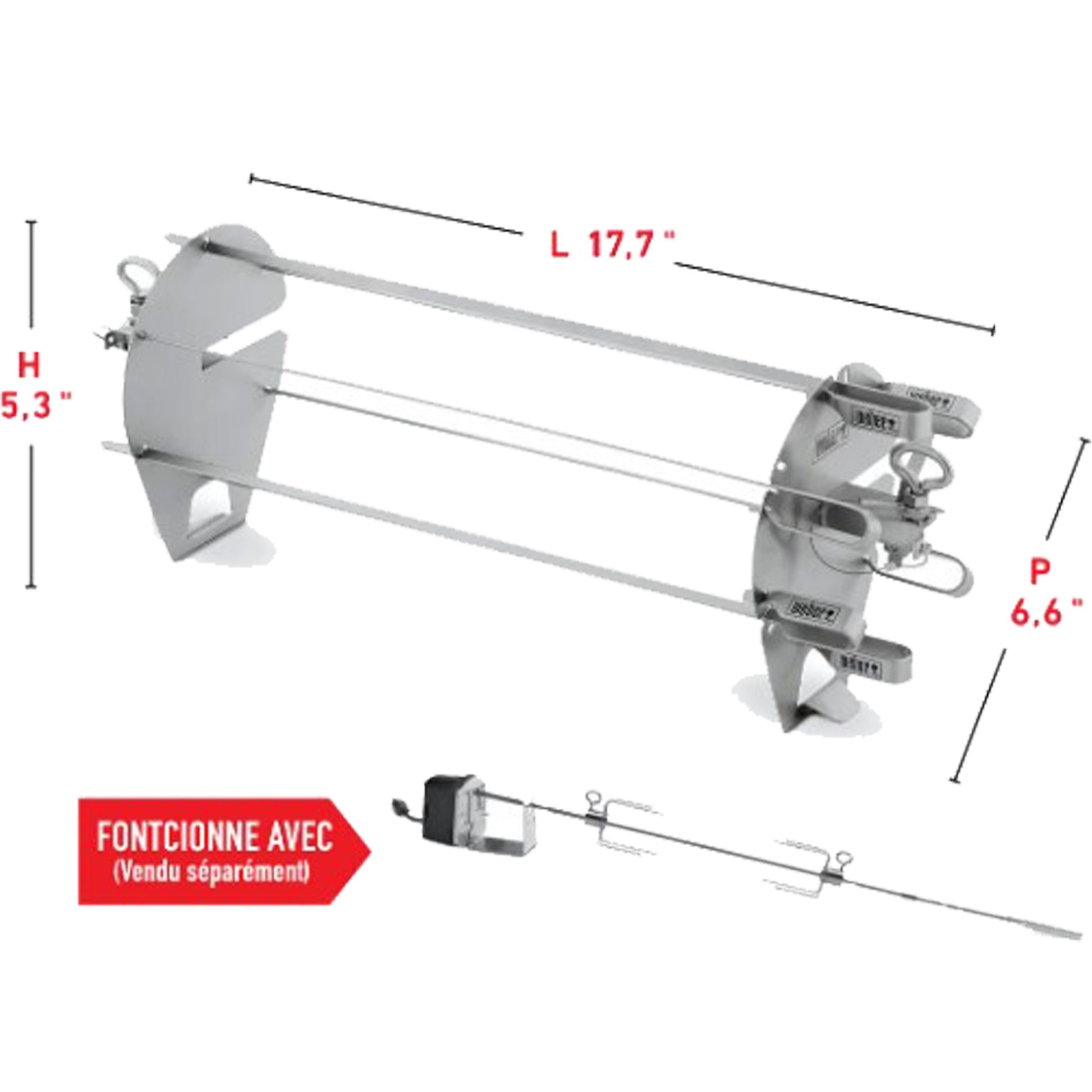 - Brochettes de 16 po à rotation lente pour une cuisson uniforme.