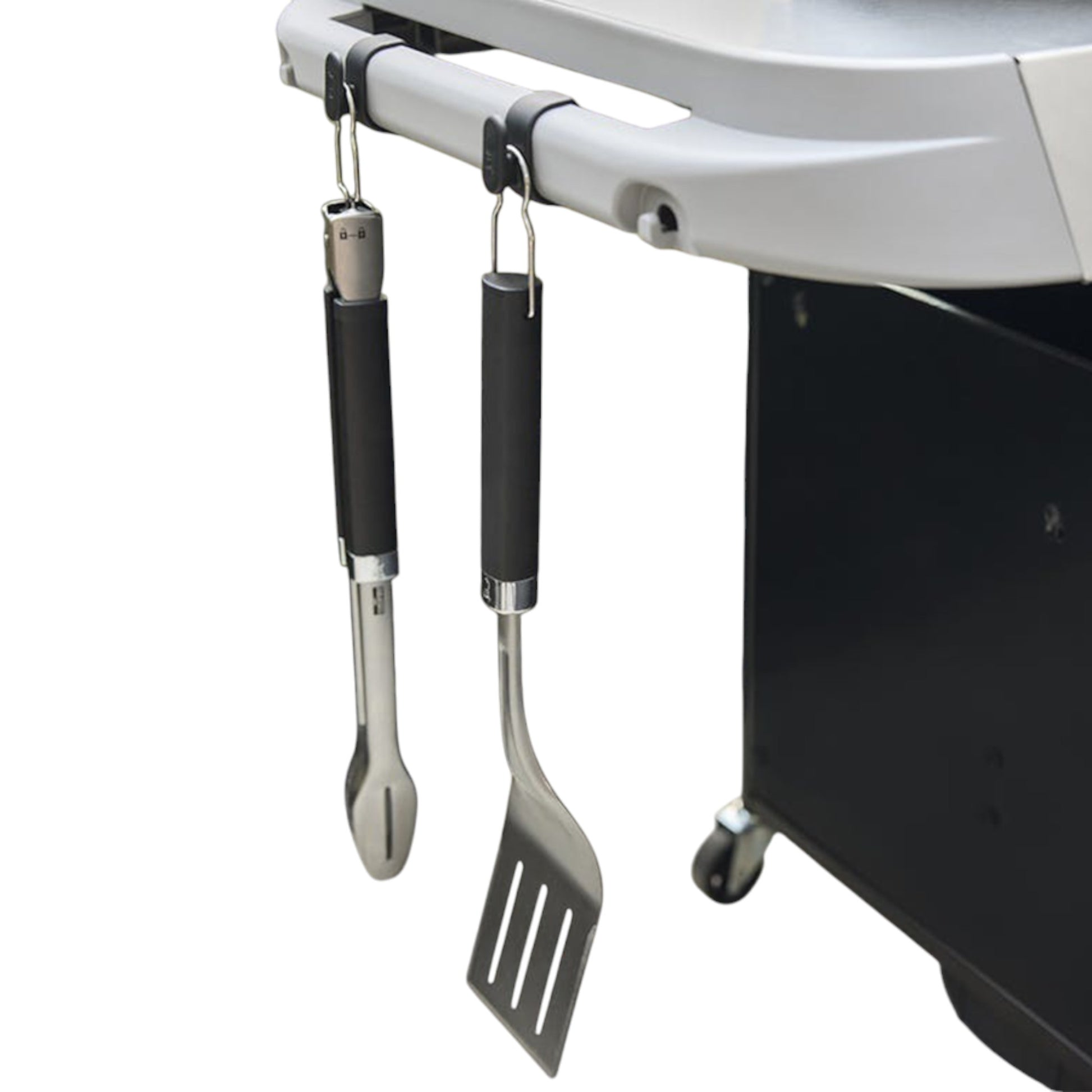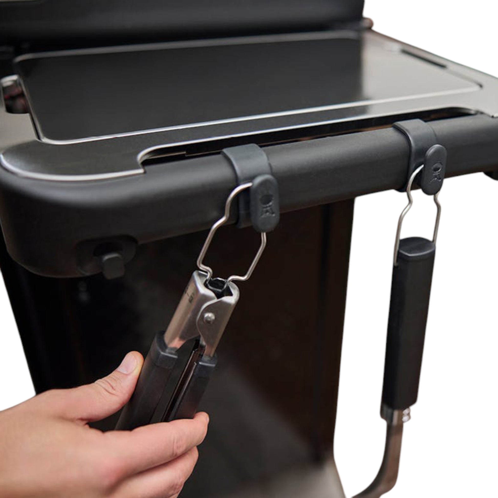 Ajoutez des endroits où accrocher vos spatules, pinces et grattoirs à portée de main avec un jeu de porte-accessoires Weber WorksMC. Les porte-accessoires s'enclenchent sur les rails latéraux Weber WorksMC de certains barbecues, grils planchas et fumoirs à granulés de bois Weber et peuvent être repositionnés rapidement et facilement. Gardez les ustensiles dont vous avez besoin à portée de main et libérez de l’espace sur vos tablettes latérales.