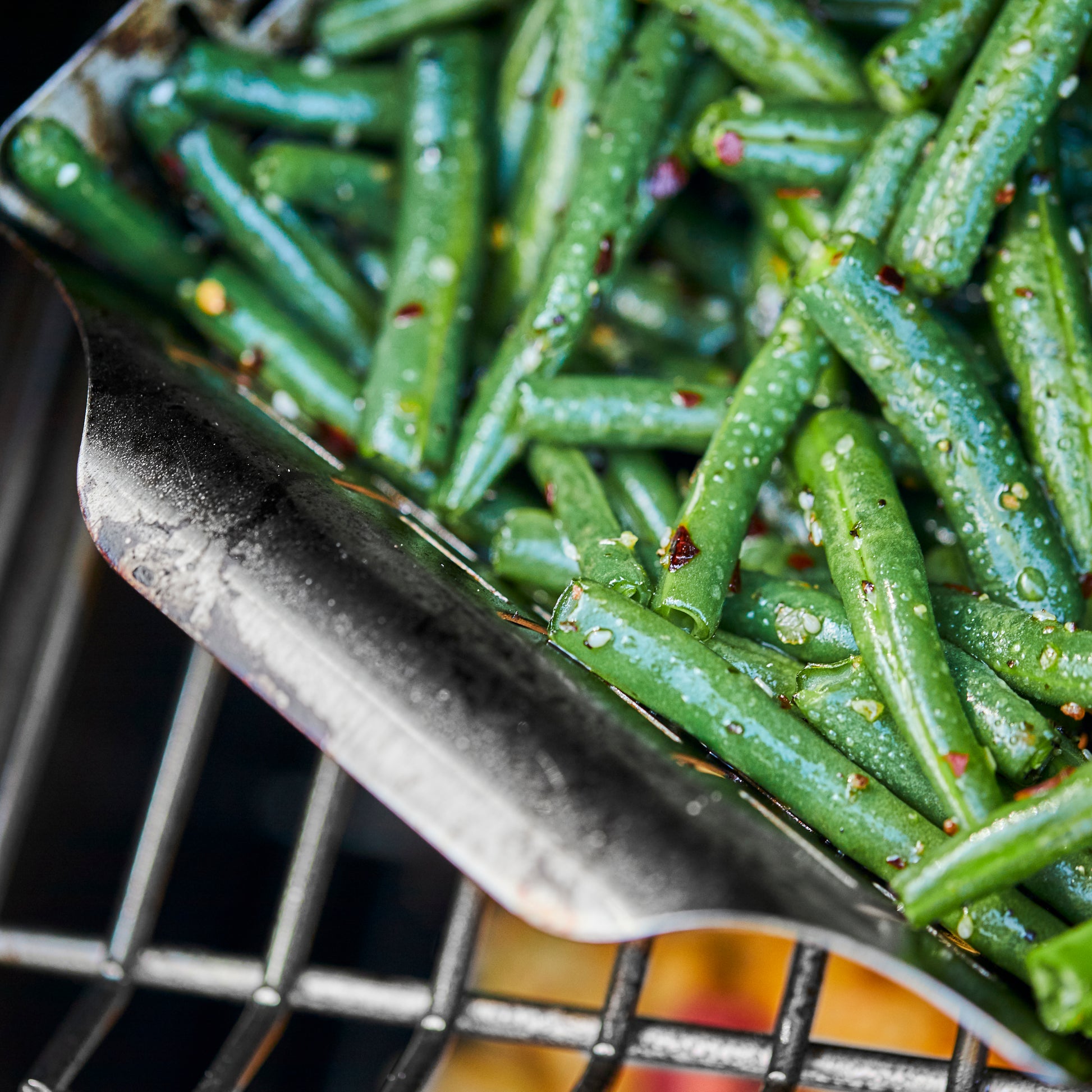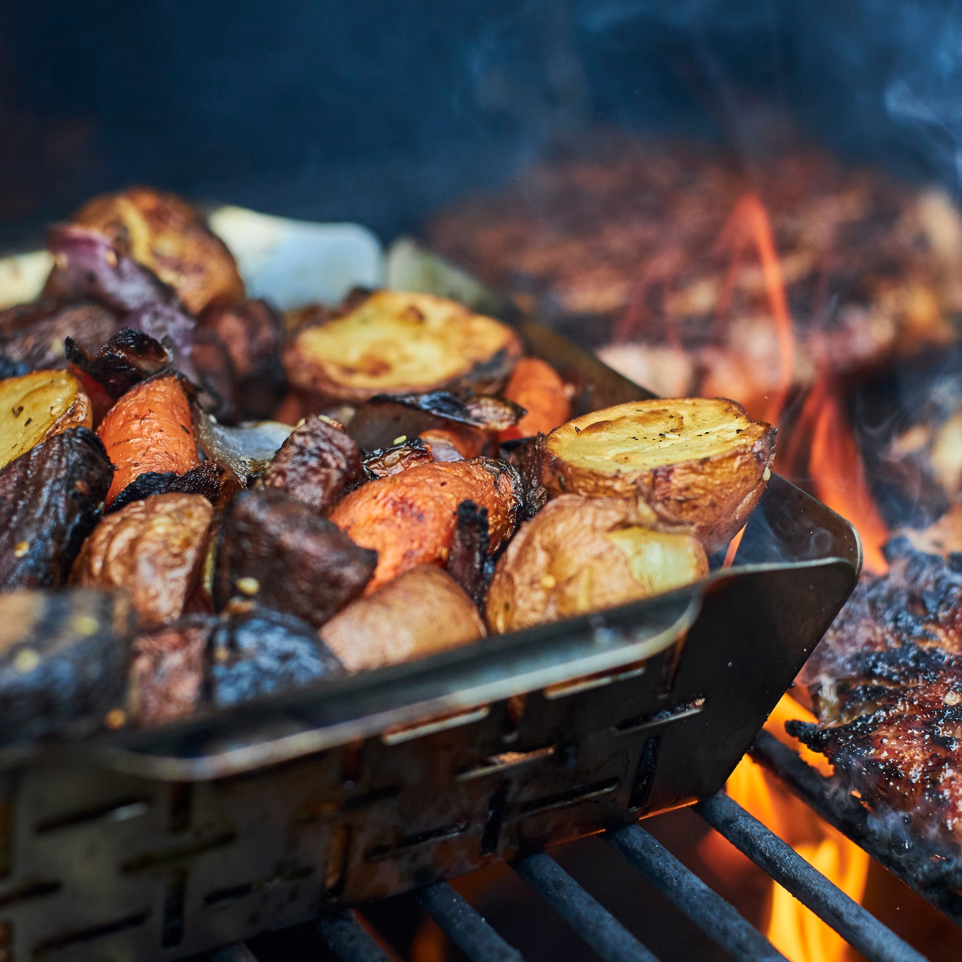 Des légumes grillés et colorés sur une pizza croustillante. Des courges et courgettes grillées pour complétervotre festin d’automne préféré. Ou encore des légumes coupés en dés saisis à point pour faire ressortir des saveurs jusque-là inconnues. Utilisez le panier pour barbecue Deluxe pour préparer facilement des légumes tranchés ou même de petits morceaux de viande.