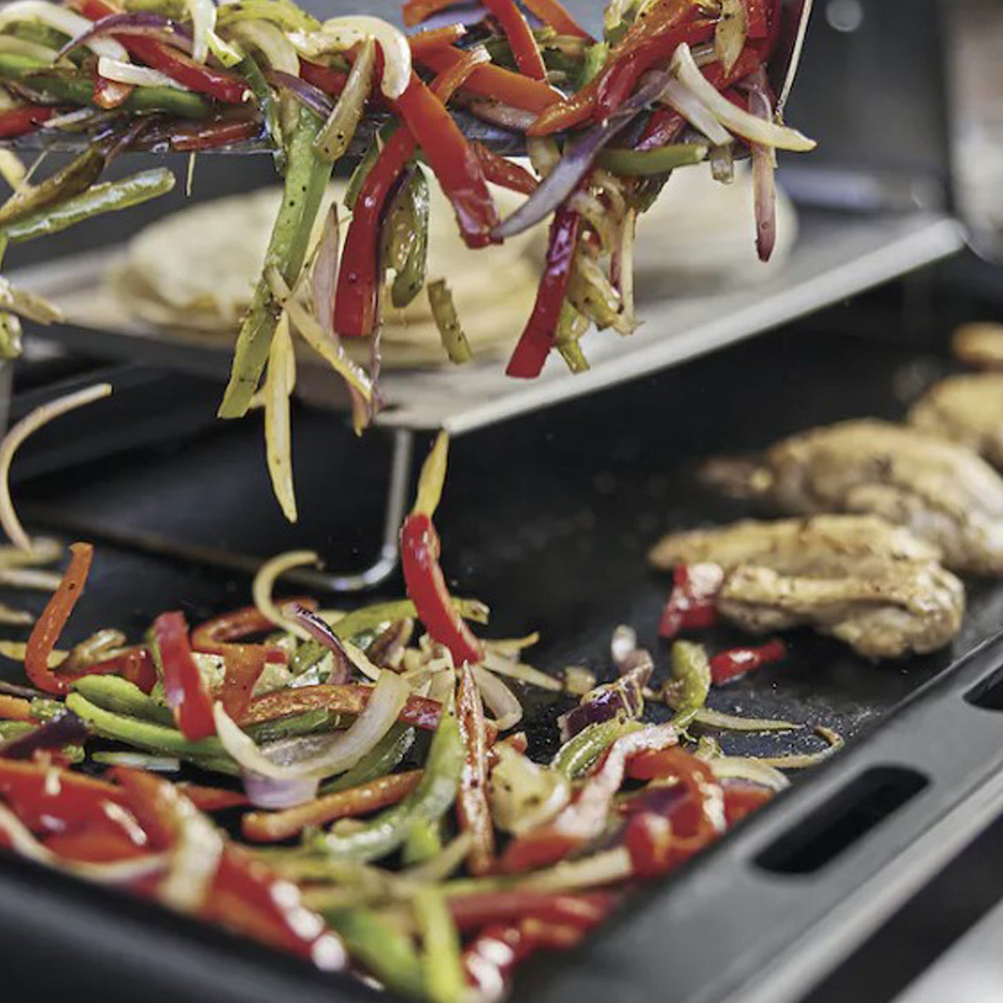 Grillez des mets délicieux avec une plancha grand format sur votre barbecue au gaz Genesis. Il suffit de quelques secondes pour glisser cette plancha sur mesure dans votre barbecue au gaz Genesis de série 300 et transformer complètement sa surface de cuisson. Grâce à la qualité supérieure des brûleurs de votre barbecue, cette plancha en acier au carbone durable chauffe uniformément de bord en bord. Des crêpes aux œufs et des fajitas aux légumes, vous aurez toute la préparation sous contrôle et vos convives se croiront au restaurant. Pour éviter les débordements et les dégâts, cette plancha est conçue pour capturer efficacement la graisse et l’évacuer dans le système de gestion du barbecue. Savourez le meilleur des deux modes de cuisson avec un seul gril. Explorez toutes les possibilités de votre barbecue avec une plancha grand format.