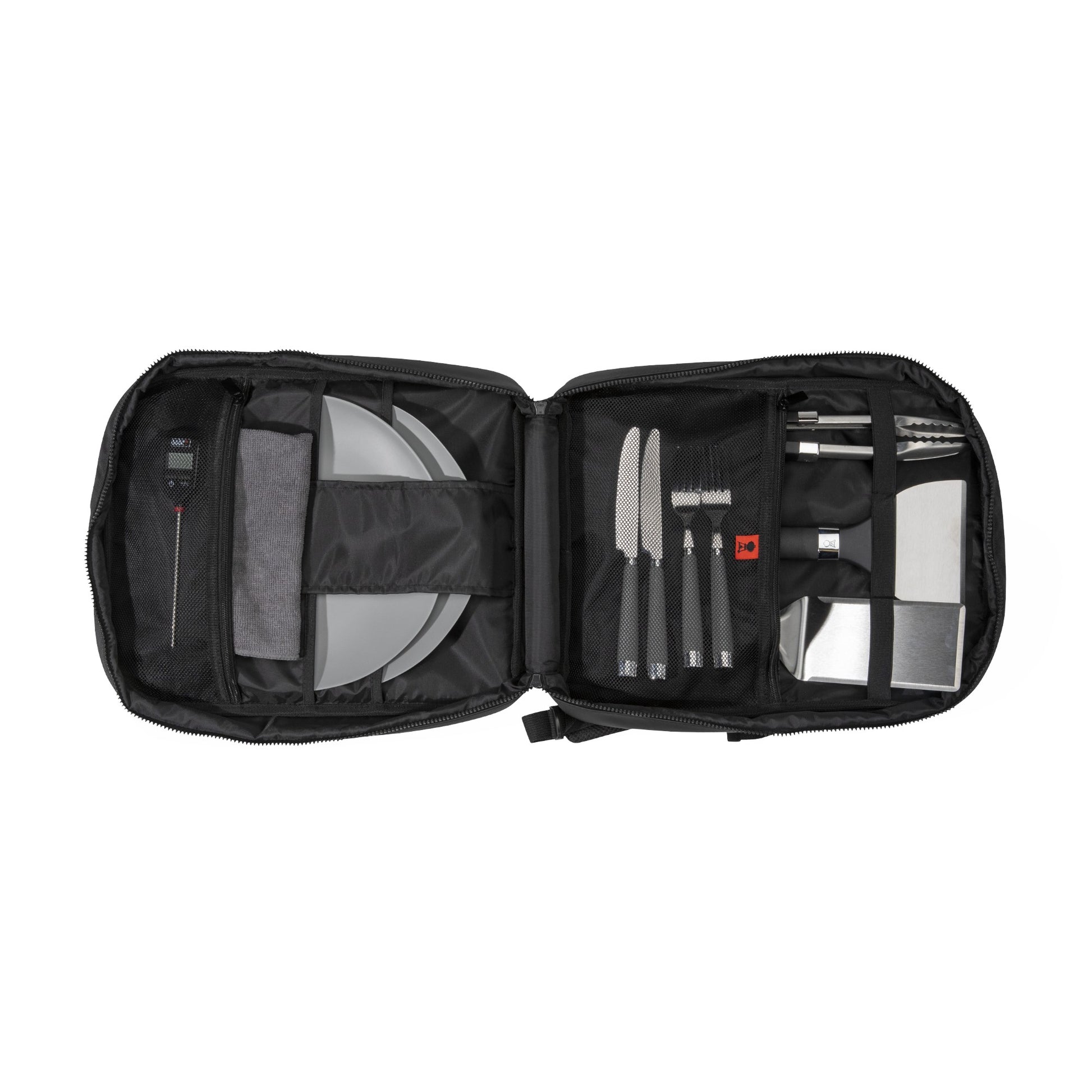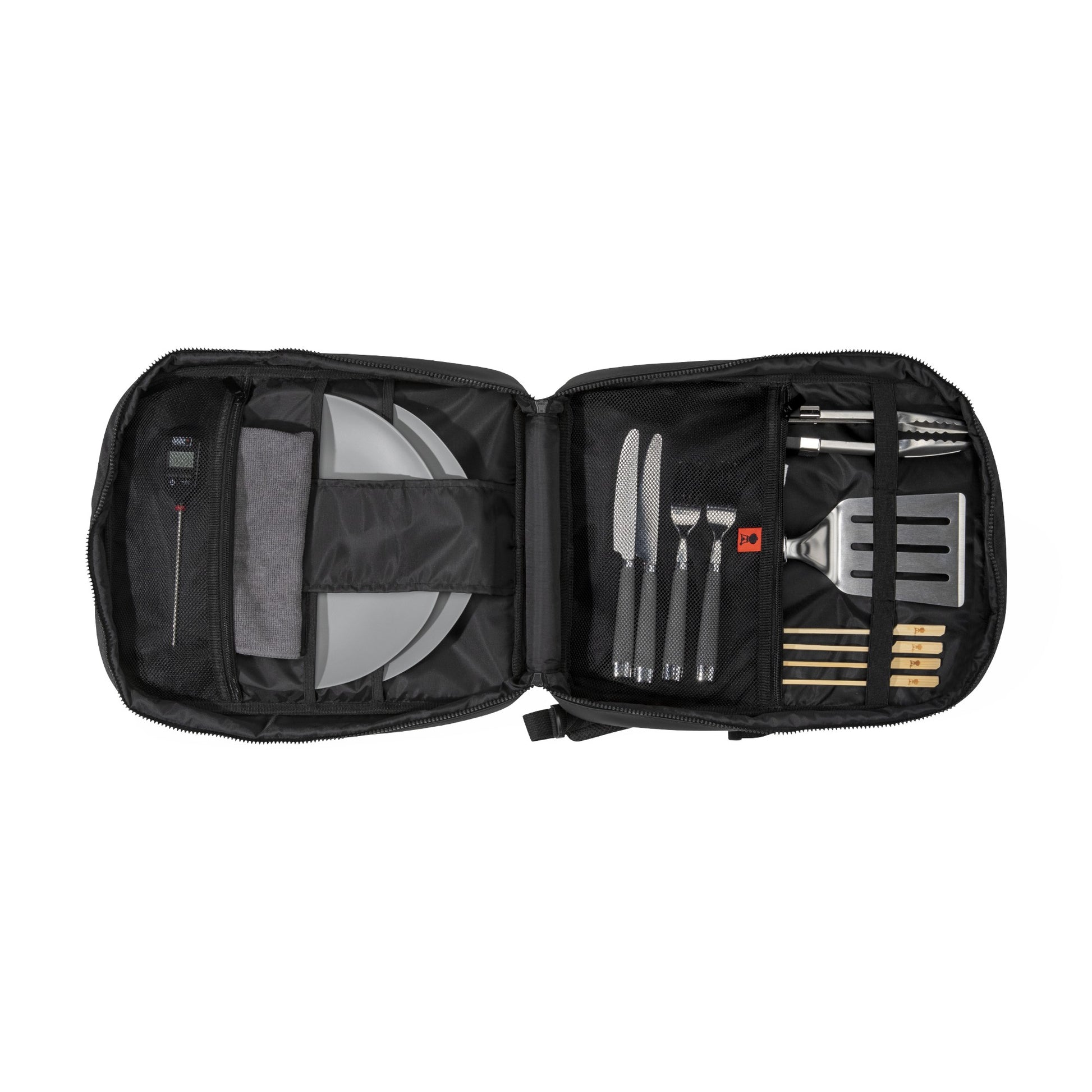 Arrivez à la prochaine fête d’avant-partie, au pique-nique ou à l'expédition de camping avec tout ce qu’il vous faut pour vos grillades dans un sac à dos. Son intérieur a été soigneusement conçu avec des zones dédiées au rangement sécuritaire des outils de grillades et de plancha, assiettes, ustensiles et autres essentiels Weber. C’est un moyen simple d'avoir tout bien organisé et accessible pour faire des grillades, où que l'on soit.